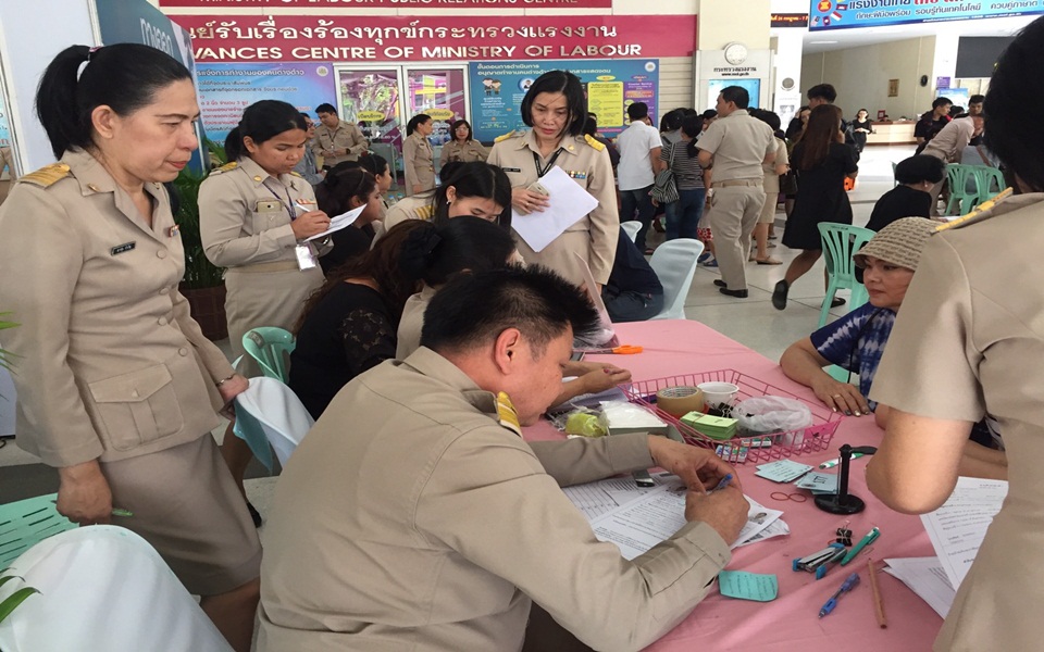3. ถ้าพบเป็นนายจ้าง-ลูกจ้างจริงเจ้าหน้าที่ออกหนังสือรับรองเพื่อไปตรวจสัญชาติ โดยสัญชาติกัมพูชา ทางการกัมพูชากำหนดเข้ามาตรวจสัญชาติที่ประเทศไทยที่จังหวัดระยองเดือนสิงหาคมนี้ โดยจะให้บริการในรูปแบบ One Stop Service (OSS) ทางการกัมพูชาจะออกเอกสารการเดินทาง (TD) ซึ่งคนต่างด้าวจ่ายค่าธรรมเนียม TD จำนวน 2,350 บาท จากนั้นไปศูนย์ตรวจสัญชาติเพื่อรับ TD ตรวจคนเข้าเมืองตรวจลงตราวีซ่า จำนวน 500 บาท สาธารณสุขตรวจสุขภาพ จำนวน 500 บาท และประกันสุขภาพ 500 บาท กรมการจัดหางานออกใบอนุญาตทำงาน จำนวน 550 บาท (ค่ายื่นคำขอ 100 + ค่าธรรมเนียมใบอนุญาต 450 บาท) ส่วนสัญชาติลาวนั้น แรงงานต้องไปสถานทูตลาวหรือกงสุลลาวประจำประเทศไทยเพื่อขอเอก สารกลับประเทศไปทำหนังสือเดินทาง และกลับเข้ามาทำงานแบบ MOU สำหรับสัญชาติเมียนมาดำเนินการได้ในประเทศไทยในรูปแบบ One Stop Service ได้ที่ 6 ศูนย์ 5 จังหวัดคือ สมุทรสาคร สมุทรปราการ เชียงราย ตาก ระนอง โดยทางการเมียนมาจะออก CI โดยคนต่างด้าวจ่ายค่าธรรม เนียม CI ล่วงหน้าได้ที่ counter service จำนวน 310 บาท จากนั้นไปที่ศูนย์ตรวจสัญชาติเพื่อตรวจสัญชาติรับ CI ตรวจคนเข้าเมืองตรวจลงตราวีซ่า จำนวน 500 บาท สาธารณสุขตรวจสุขภาพ จำนวน 500 บาท และประกันสุขภาพ 500 บาท กรมการจัดหางานออกใบอนุญาตทำงาน จำนวน 550 บาท (ค่ายื่นคำขอ 100 + ค่าธรรมเนียมใบอนุญาต 450 บาท) โดยแรงงานสามารถทำงานได้ถึงวันที่ 31 มีนาคม 2561 ซึ่งจากการเปิดให้บริการรับแจ้งการทำงานของคนต่างด้าวปรากฏว่าขณะนี้มีนายจ้างมายื่นคำขอจำนวนกว่า 18,000 ราย แรงงานต่างด้าว 54,000 คน สอบ ถามรายละเอียดเพิ่มเติมได้ที่สำนักงานจัดหางานจังหวัด สำนักงานจัดหางานกรุงเทพมหานครพื้นที่ 1-10 หรือสายด่วนกรมการจัดหางาน โทร. 1694.-สำนักข่าวไทย