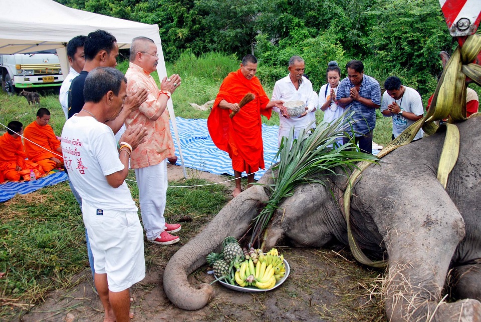 เมื่อเวลา 15.00 น. วันนี้ (27 ก.ค.) ที่มูลนิธิช้างหัสดินทร์ อ.หัวหิน จ.ประจวบคีรีขันธ์ นายวาณิช เห็นวงศ์ประเสริฐ ประธานกรรมการมูลนิธิช้างหัสดินทร์ พร้อมคณะกรรมการและควาญช้าง ได้นิมนต์พระสงฆ์ 5 รูป จากวัดหนองยายอ่วม สวดมาติกาบังสุกุลให้กับ “พังร่ำรวย” อายุ 98 ปี หลังจากช่วงเช้าไม่ยอมกินอาหาร และล้มลงอย่างสงบ ท่ามกลางความอาลัยของนักท่องเที่ยวต่างชาติที่คุ้นเคยนำอาหารมาเลี้ยงช่วงช้างยังมีชีวิต