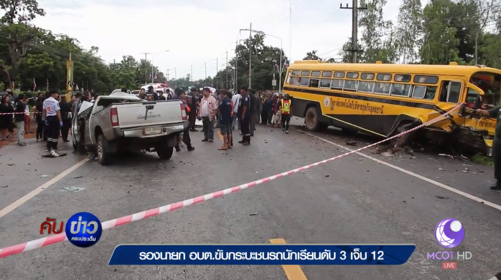 อุดรธานี 27 ก.ค.-รถกระบะ รองนายก อบต.บ้านขาว จ.อุดรธานี พุ่งข้ามเลนชนรถนักเรียน มีผู้เสียชีวิต 3 คน บาดเจ็บอีก 12 คน
