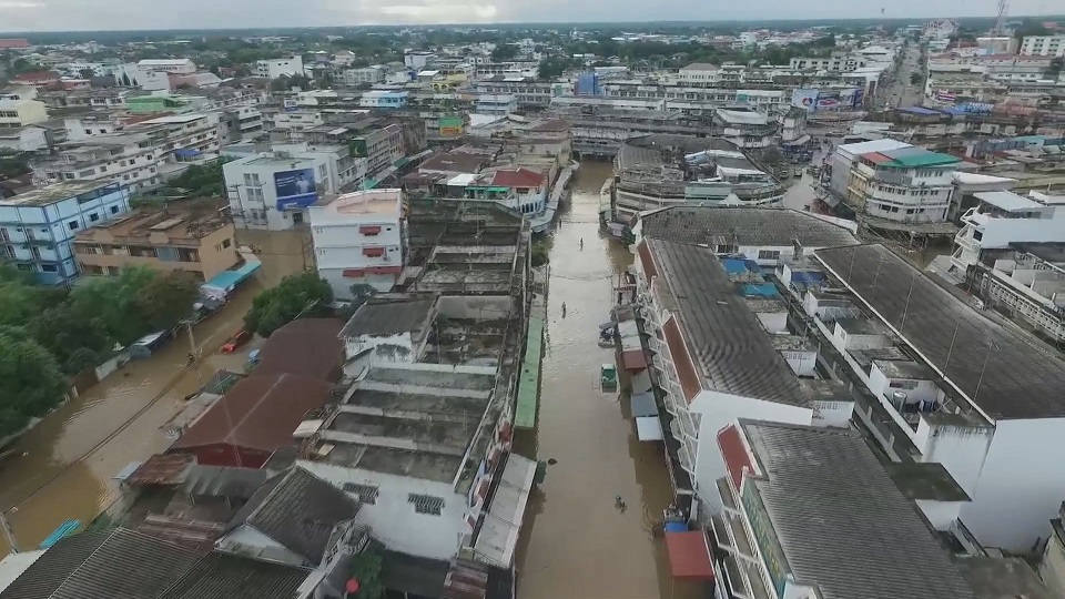 สุโขทัย 28 ก.ค.- แม่น้ำยมทะลักท่วมตลาดสุโขทัยแต่เช้า จนท.พยายามใช้บิ๊กแบ็คอุดรอยแตกใต้ผนังกั้นน้ำทั้งคืน แต่ต้านไม่อยู่ ชาวบ้านเร่งเก็บของจ้าละหวั่น จับตาบ้านหาดสะพานจันทร์ด่านแรกรับน้ำจากแพร่ก่อนผ่านสุโขทัย