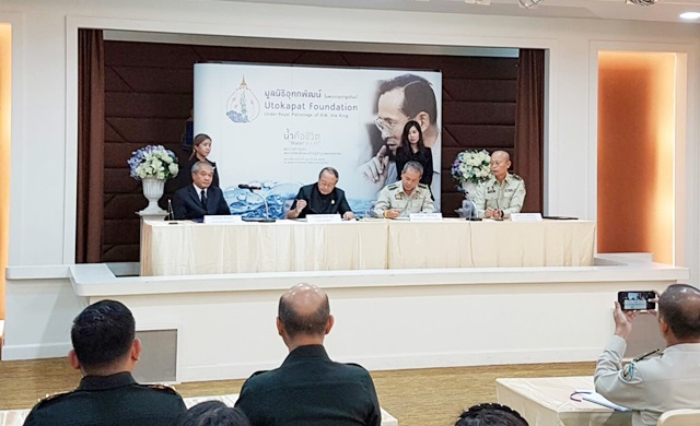 ดร.สุเมธ ตันติเวชกุล เลขาธิการมูลนิธิชัยพัฒนา ในฐานะประธานมูลนิธิอุทกพัฒน์ในพระบรมราชูปถัมภ์ และนายธัญญา เนติธรรมกุล อธิบดีกรมอุทยานแห่งชาติ สัตว์ป่าและพันธุ์พืช กระทรวงทรัพยากรธรรมชาติและสิ่งแวดล้อม ร่วมลงนามบันทึกข้อตกลงความร่วมมือ “การพัฒนาและขยายผลเครือข่ายการจัดการทรัพยากร ดิน น้ำ ป่า ตามแนวพระราชดำริ” เพื่อเฉลิมพระเกียรติสมเด็จพระนางเจ้าฯ พระบรมราชินีนาถ เนื่องในโอกาสมหามงคลเฉลิมพระชนมพรรษา 7 รอบ 12 สิงหาคม 2559