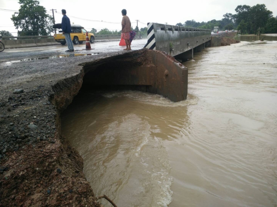 จังหวัดมหาสารคาม 1 แห่ง ทางหลวงหมายเลข 208 หนองสระพัง – มหาสารคาม ในพื้นที่ อ.เมือง ช่วง กม.ที่ 17 คอสะพานขาดปิดการจราจร ไม่มีเส้นทางเลี่ยง / จังหวัดมุกดาหาร 3 แห่ง ทางหลวงหมายเลข 2287 ดงหลวง – สานแว้ ในพื้นที่ อ.ดงหลวง ช่วงกม.ที่ 18 ระดับน้ำขาเข้าสูง 180 ซม. ระดับน้ำขาออก 180 ซม. ไม่มีเส้นทางเลี่ยง / ทางหลวงหมายเลข 2287 ดงหลวง – สานแว้ ในพื้นที่ อ.ดงหลวง ช่วงกม.ที่ 20 – 21 ระดับน้ำขาเข้าสูง 180 ซม. ระดับน้ำขาออก 180 ซม. ไม่มีเส้นทางเลี่ยง / ทางหลวงหมายเลข 2287 ดงหลวง – สานแว้ ในพื้นที่ อ.ดงหลวง ช่วงกม.ที่ 22 ระดับน้ำขาเข้าสูง 180 ซม. ระดับน้ำขาออก 180 ซม. ไม่มีเส้นทางเลี่ยง และจังหวัดร้อยเอ็ด 1 แห่ง ทางหลวงหมายเลข 2116 โพนทอง – ห้วยคล้อ ในพื้นที่ อ.โพนทอง ช่วงกม.ที่ 75 สะพานชำรุด ไม่มีเส้นทางเลี่ยง.-สำนักข่าวไทย