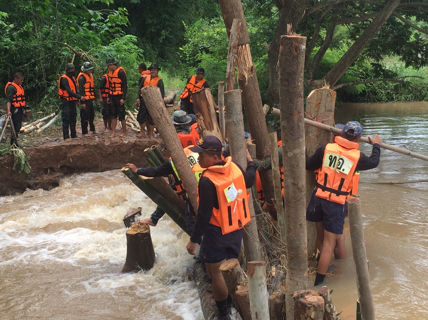 กรุงเทพ30 ก.ค.-นาวาอากาศเอก ขจรฤทธิ์ แก้วอำไพ ผู้บังคับการ กองบิน46 ในฐานะผู้อำนวยการศูนย์บรรเทาสาธารณภัย กองบิน46 พร้อมด้วยนายทหารกิจการพลเรือน เจ้าหน้าที่ และกำลังพลทหาร จำนวน 100 นาย ออกช่วยเหลือพี่น้องประชาชน ที่ประสบปัญหาอุทกภัย ที่บ้านท่าแห หมู่ที่ 10 ตำบลเนินกุ่ม อำเภอบางกระทุ่ม จังหวัดพิษณุโลก จากกรณีที่คลองเนินกุ่มอ.บางกระทุ่ม จ.พิษณุโลกรับน้ำไหลบ่าจาก ต.ชมพู อ.เนินมะปราง เป็นจำนวนมากทำให้พนังกั้นน้ำแห่งนี้พังกว่า 20เมตร ขณะนี้ระดับน้ำได้เพิ่มสูงขึ้น และเอ่อล้นคันคลองเกือบตลอดสาย ไหลเข้าท่วมบ้านเรือนประชาชน และพื้นที่การเกษตรเป็นบริเวณกว้าง ในเขตพื้นที่ตำบลวัดตายม และ เนินกุ่ม หมู่ 4 หมู่ 6 และหมู่ 10 ต.เนินกุ่ม อ.บางกระทุ่ม โดยหน่วยงานที่เกี่ยวข้องได้สำรวจพื้นที่ประสบอุทกภัยในพื้นที่หมู่ 1 หมู่ 4 หมู่6 และหมู่ 10 ตำบลเนินกุ่ม อำเภอบางกระทุ่ม จังหวัดพิษณุโลก พบว่าน้ำได้เข้าท่วมในหมู่บ้านหลังมีมวลน้ำขนาดใหญ่จากคลองชมพู ตำบลชมพู อำเภอเนินมะปราง ได้ไหลบ่าลงสู่คลองเนินกุ่มจนกัดเซาะตลิ่งพังทลายลงก่อนจะไหลเข้าท่วมบ้านเรือนประชาชนและพื้นที่การเกษตรในหลายหมู่บ้านจนส่งผลให้ประชาชนได้รับความเดือดร้อนและพื้นที่การเกษตรได้รับความเสียหายเป็นวงกว้าง