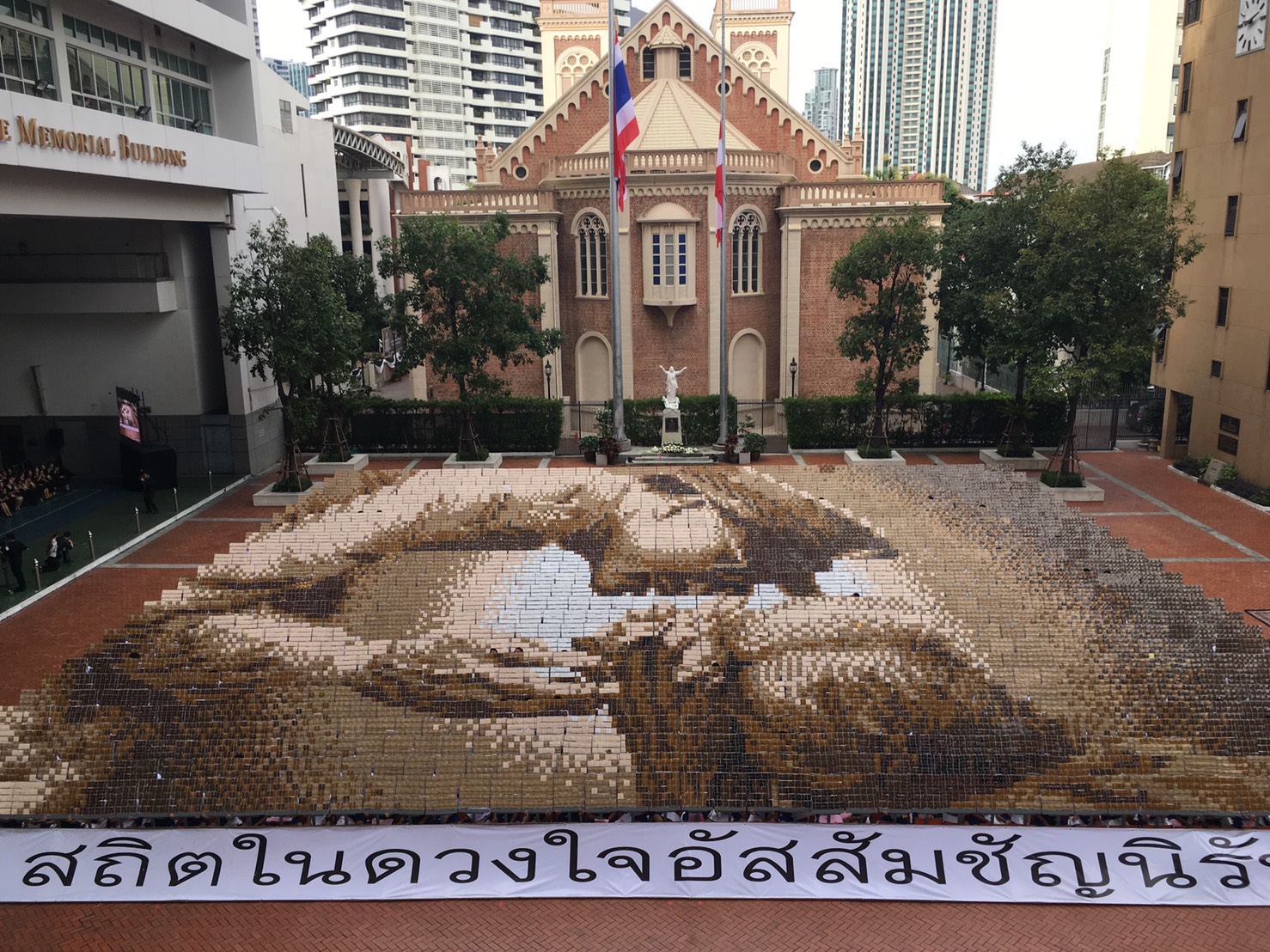 บรรยากาศวันนี้ (28 ต.ค.) ที่โรงเรียนอัสสัมชัญ เขตบางรัก กรุงเทพมหานคร ภายใต้การจัดงาน “อัสสัมชัญ รำลึกในพระมหากรุณาธิคุณ พระบาทสมเด็จพระปรมินทรมหาภูมิพลอดุลยเดช” ด้วยน้อมรำลึกในพระมหากรุณาธิคุณหาที่สุดมิได้ จัดกิจกรรมจากนักเรียนชั้นมัธยมศึกษา 1,250 คน รวมใจถวายงานผ่านการแปรอักษรพระบรมสาทิสลักษณ์ พระบาทสมเด็จพระปรมินทรมหาภูมิพลอดุลยเดช ในอิริยาบถต่างๆ จำนวน 10 ภาพ ด้วยเพลทแปรอักษร 1:25 ใช้เวลาในการเปลี่ยนภาพไม่เกิน 5 นาที โดยผ่านการฝึกซ้อมเพียง 1 สัปดาห์