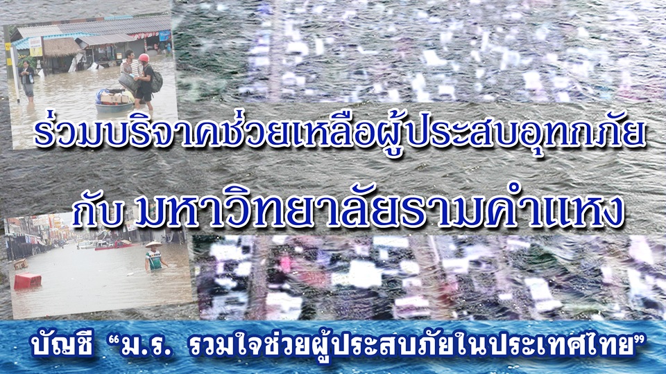 มหาวิทยาลัย ขอเชิญชวนชาวรามคำแหงและผู้มีจิตศรัทธาร่วมบริจาคเงินช่วยเหลือผู้ประสบภัยครั้งนี้ ได้ตั้งแต่บัดนี้เป็นต้นไป โดยโอนเงินเข้าบัญชี ธนาคารออมสิน สาขารามคำแหง เลขที่ 020036446654 ชื่อบัญชี “ม.ร. รวมใจช่วยผู้ประสบภัยในประเทศไทย”