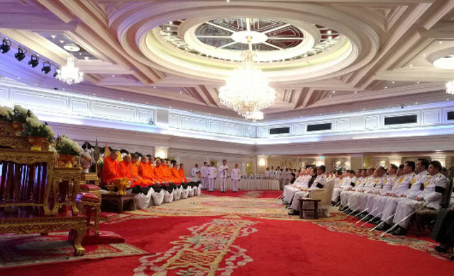 พล.อ.เฉลิมชัย ได้จุดธูปเทียนบูชาพระรัตนตรัย และเครื่องท้องน้อย ถวายสักการะ และถวายบังคมพระบรมฉายาลักษณ์ ก่อนจะเข้าสู่พิธีสงฆ์เจริญพระพุทธมนต์ จำนวน 10 รูป จากวัดเบญจมบพิตรดุสิตวนาราม หลังจากนั้นเจ้าหน้าที่ได้ลาดผ้าขาวและภูษาโยงให้ประธานผ้าบังสุกุล ก่อนที่พระสงฆ์สดับปกรณ์ ประธานและคณะนายทหารชั้นผู้ใหญ่ถวายเครื่องไทยธรรมพระสงฆ์ 10 รูป หลังจากนั้นประธานในพิธีกรวดน้ำรับพรกราบลาพระรัตนตรัยและกราบถวายบังคมพระบรมฉายาลักษณ์