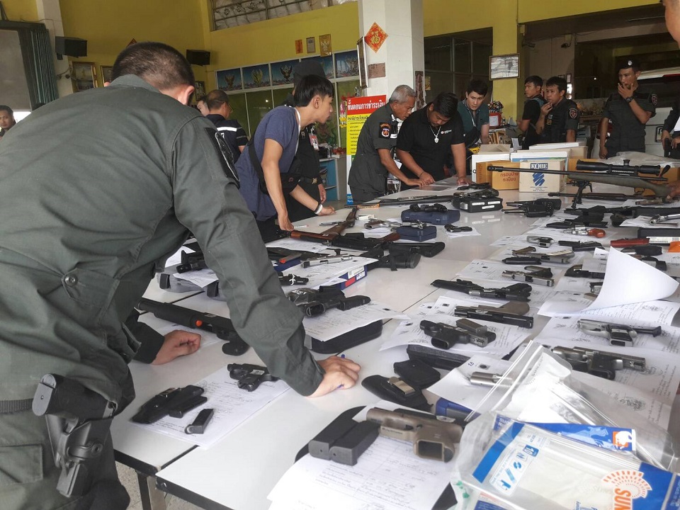 การตรวจค้นเจ้าหน้าที่พบเอกสารสัญญาเงินกู้จำนวนมาก โฉนดที่ดิน ใบ ภบท. 5 ที่รับจำนำ สมุดเล่มทะเบียนรถยนต์ รถจักรยานยนต์ วิทยุสื่อสาร 5 เครื่อง อาวุธปืนสั้น และอาวุธปืนยาวรวม 39 กระบอก ซึ่งจะได้ตรวจสอบชื่อผู้ครอบครองว่าถูกต้องตามกฎหมายหรือไม่ และอาจเป็นปืนที่รับจำนำหรือขายฝาก จึงรวบรวมไว้เป็นของกลาง พร้อมคุมตัวเสี่ยเปี๊ยก กับนายโชค ลูกน้องคนสนิท ส่งพนักงานสอบสวน สภ.ปราณบุรี เบื้องต้นเสี่ยเปี๊ยกรับสารภาพเป็นเจ้าของทรัพย์สินทั้งหมด เจ้าหน้าที่ได้แจ้งข้อกล่าวหาให้บุคคลอื่นกู้ยืมเงินโดยเรียกดอกเบี้ยเกินในอัตราที่กฎหมายกำหนด ตามพระราชบัญญัติห้ามเรียกดอกเบี้ยเกินอัตรา 2560 มีโทษจำคุกไม่เกิน 2 ปี หรือปรับไม่เกินสองแสน หรือทั้งจำทั้งปรับ