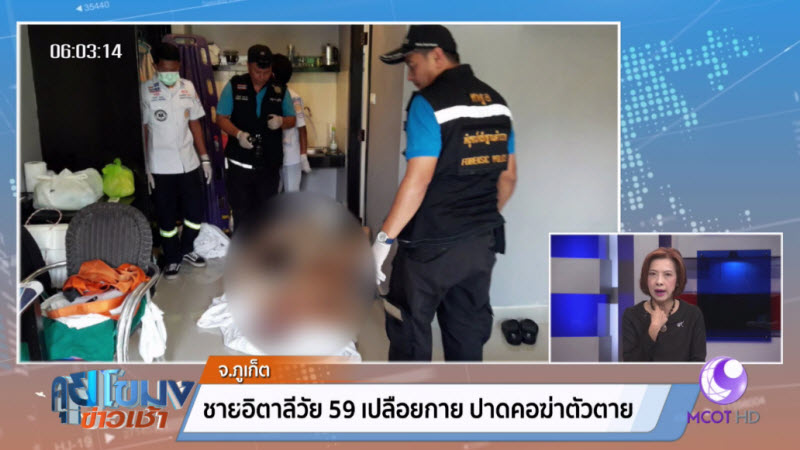 ภูเก็ต 2 ส.ค. – นักท่องเที่ยวชายชาวอิตาลี วัย 59 ปี เปลือยกายปาดคอฆ่าตัวตายคารีสอร์ทที่ จ.ภูเก็ต เบื้องต้นคาดสาเหตุเครียดหนักกับปัญหาชีวิต