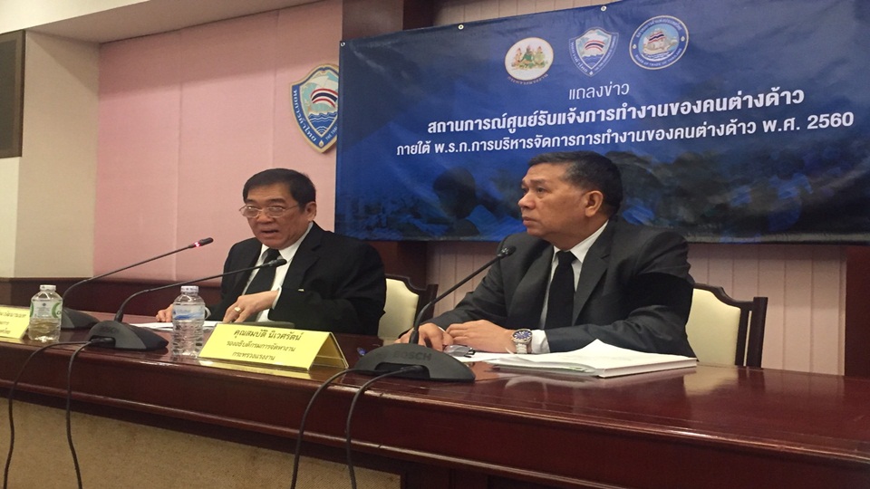 กระทรวงแรงงาน ร่วมกับ หอการค้าไทยและสภาหอการค้า จัดแถลงข่าวสถานการณ์ศูนย์รับแจ้งการทำงานของแรงงานต่างด้าว ณ หอการค้าไทย ถ.ราชบพิธ โดยนายสมบัติ นิเวศรัตน์ รองอธิบดีกรมการจัดหางาน กล่าวว่า หลังเปิดศูนย์รับแจ้งการทำงานของแรงงานต่าวด้าวตั้งแต่วันที่ 24 ก.ค.ที่ผ่านมา จนถึงวันนี้ 3 ส.ค. เวลา 08.00 น. เป็นเวลา 10 วันมีนายจ้างมาแจ้งยื่นขอจ้างแรงงานต่างด้าว ทั้งที่ศูนย์และผ่านระบบออนไลน์แล้ว 113,374 ราย มีลูกจ้างต่างด้าวเข้าระบบแล้ว 396,390 คน แบ่งเป็นเมียนมา 234,742 คน กัมพูชา 107,504 คน ลาว 54,144 คน โดยกิจการที่มาขอยื่นมากที่สุดคือ เกษตรและปศุสัตว์ 91,570 คน กิจการก่อสร้าง 77,917 คน จำหน่ายอาหารและเครื่องดื่ม 36,667 คน การให้บริการต่างๆ(แม่บ้าน) 28,983 คน กิจการต่อเนื่องเกษตร 25,268 คน และค้าส่ง ค้าปลีกแผงลอย 20,867 คน จังหวัดที่มีแรงงานต่างด้าวเข้าสู่ระบบมากสุด ได้แก่กรุงเทพมหานคร สมุทรปราการ ระยอง ปทุมธานี และเชียงใหม่