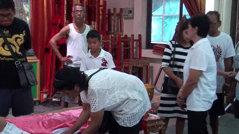 เมื่อเวลา 15.00 น. ( 3 ส.ค.) นายสุทธิชัย คงผล อายุ 33 ปี และนางขวัญตา บุญงาม อายุ 33 ปี นำศพน้องกาก้า ลูกชาย อายุ 6 ขวบ นักเรียนชั้น ป.1 มาทำพิธีรดน้ำศพที่ศาลา 1 วัดเชิงเลน ต.ราชคราม อ.บางไทร จ.พระนครศรีอยุธยา ท่ามกลางญาติและเพื่อนบ้านมาร่วมไว้อาลัย นอกจากนี้ ยังมีชาย อายุ 57 ปี คนขับรถกระบะรับส่งนักเรียนคันที่น้องกาก้าถูกลืมไว้จนหมดสติและเสียชีวิตที่โรงพยาบาลพระนครศรีอยุธยาเมื่อค่ำวานนี้ (2 ส.ค.) มาร่วมไว้อาลัยด้วยใบหน้าเศร้าหมอง