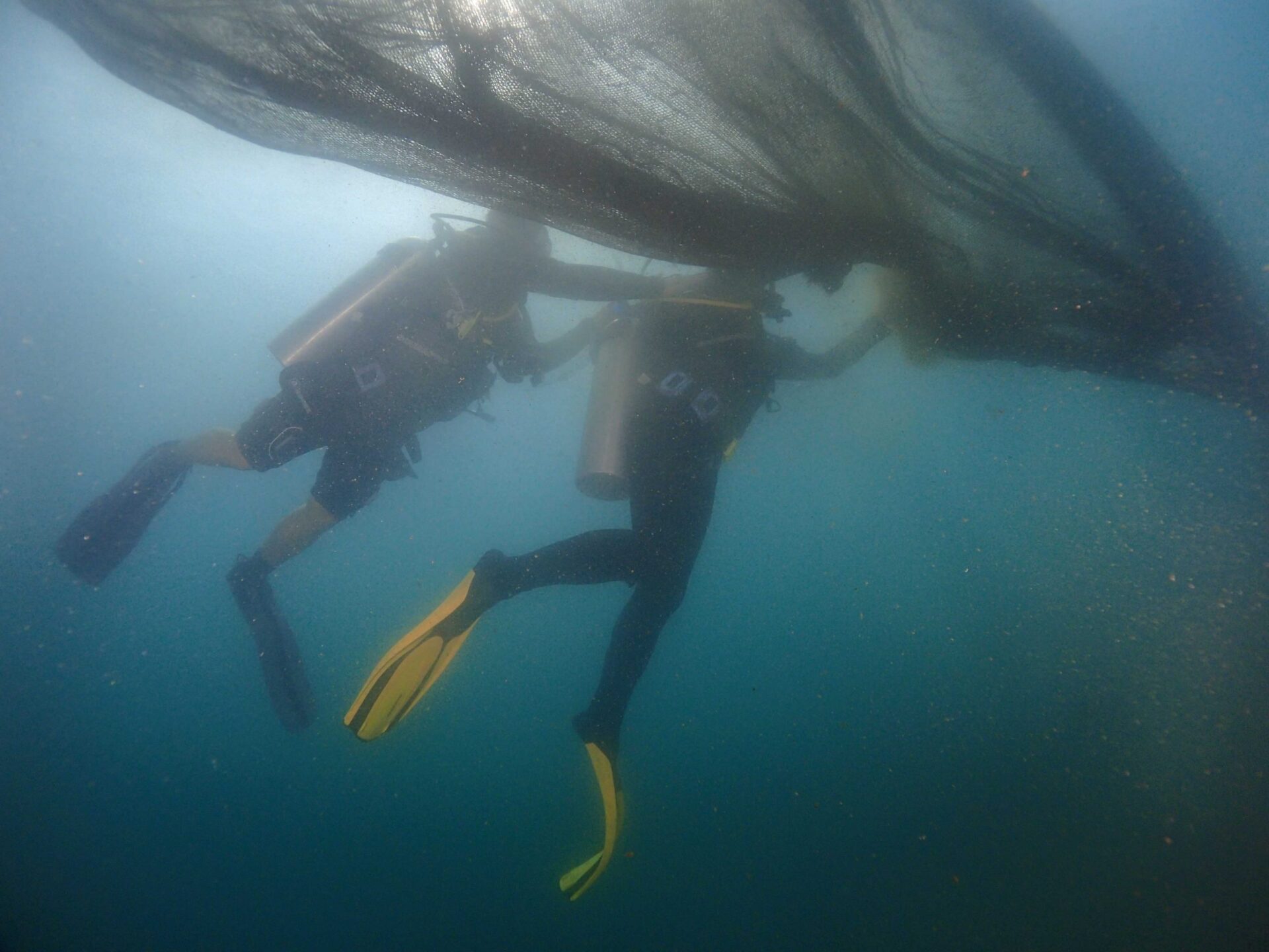 ชุมพร 27 ต.ค.- ททท.ชุมพรจับมือทุกภาคส่วน “ทำดีเพื่อพ่อ เก็บขยะ ตัดอวนใต้ทะเล” ลึกเกือบ 20 เมตร รอบเกาะร้านเป็ดร้านไก่ พบอวนใหญ่ปกคลุมแนวปะการังและซากปลาสวยงาม