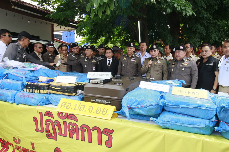เมื่อเวลา 11.30 น. (4 ส.ค.) พล.ต.อ.จักรทิพย์ ชัยจินดา ผู้บัญชาการตำรวจแห่งชาติ พล.ต.อ.เฉลิมเกียรติ ศรีวรขาน รองผู้บัญชาการตำรวจแห่งชาติ และนายสุจินต์ ไชยชุมศักดิ์ ผู้ว่าราชการจังหวัดพระนครศรีอยุธยา ลงพื้นที่จุดตรวจชุมชน ริมถนนสายเอเชียขาเข้า กทม.หลักกิโลเมตรที่ 47 เขตหมู่ 4 ตำบลท่าตอ อำเภอมหาราช จังหวัดพระนครศรีอยุธยา แถลงการจับกุมยาบ้า 6 ล้านเม็ด เมื่อคืนที่ผ่านมา (3 ส.ค.) พร้อมผู้ต้องหา 1 คน คือ นายธนากร พันธุ์ศิลา อายุ 27 ปี เนื่องจากเจ้าหน้าที่สืบทราบเบาะแสว่าจะมีการลำเลียงยาเสพติดเข้ามาพักรอในย่านรามอินทรา จึงสนธิกำลังฝ่ายปกครองและทหารตั้งด่านตรวจเข้มตามแผนปฏิบัติการ “ประชารัฐร่วมใจอโยธาร่มเย็น” กระทั่งพบรถยนต์ 2 คัน เร่งเครื่องหลบหนีก่อนถึงด่านเข้าไปในซอย แต่เจ้าหน้าที่ได้วางกำลังดักรอไว้แล้ว คนขับรถทั้งสองคันเห็นจวนตัวจึงทิ้งรถหลบหนีไป และการตรวจค้นในรถยนต์ สีขาว ทะเบียน ฎข 9871 กรุงเทพมหานคร พบยาบ้า 21 กระสอบ รวม 4.2 ล้านเม็ด อีกคันเป็นรถกระบะ สีดำ ทะเบียน สม 3196 กรุงเทพ พบยาบ้า 9 กระสอบ รวม 1,800,000 เม็ด และยังมีหลบหนีไปได้คาดว่าประมาณ 3 คน