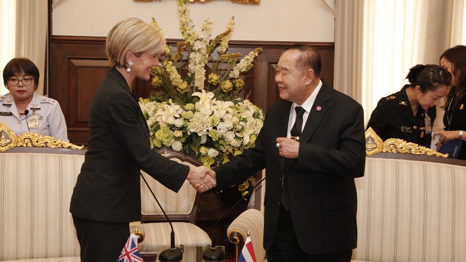 กระทรวงกลาโหม 4 ส.ค.-รัฐมนตรีว่าการต่างประเทศเครือรัฐออสเตรเลีย เข้าเยี่ยมคำนับ รองนายกรัฐมนตรีและรัฐมนตรีว่าการกระทรวงกลาโหม ในโอกาสเดินทางเยือนประเทศไทยอย่างเป็นทางการเพื่อส่งเสริมความร่วมมือด้านการทหารและความมั่นคง พร้อมทั้งได้แลกเปลี่ยนความเห็นและท่าทีเกี่ยวกับสถานการณ์ของภูมิภาค
