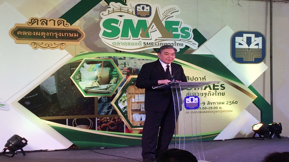 นายอภิศักดิ์ ตันติวรวงศ์ รัฐมนตรีว่าการกระทรวงการคลัง นางสาวเรณู ตังคจิวางกูร รองเลขาธิการนายกรัฐมนตรีฝ่ายการเมือง พร้อมด้วยนายสุรพงศ์ นิลพันธุ์ รองผู้จัดการ ธนาคารเพื่อการเกษตรและสหกรณ์การเกษตร (ธ.ก.ส.) ร่วมเปิดงาน “ตลาดของดี SMEs เกษตรไทย” บริเวณริมคลองผดุงกรุงเกษมข้างทำเนียบรัฐบาล จัดขึ้นระหว่างวันที่ 4 -27 สิงหาคม 2560 ตั้งแต่เวลา 09.00-19.00 น. เพื่อชวนประชาชนทั่วไป พร้อมบริษัททัวร์นำนักท่องเที่ยวต่างชาติร่วมชม ชิม ช้อป และสนับสนุนผลิตภัณฑ์จากผู้ผลิตถึงผู้บริโภคโดยตรง มีบูธร้านค้าลูกค้าเอสเอ็มอีเกษตรสลับสับเปลี่ยนหมุนเวียนกว่า 500 ร้านค้า