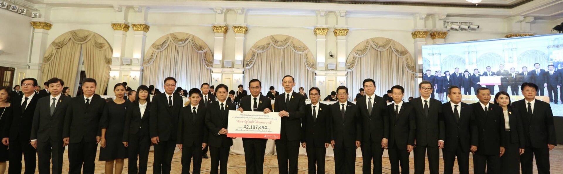 ซึ่งมีพล. อ. ประยุทธ์ จันทรโอชา นายกรัฐมนตรีเป็นผู้รับมอบ มียอดเงินบริจาค
