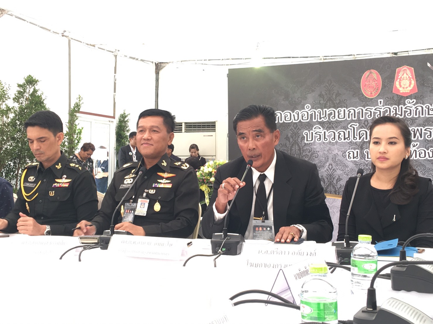 พลตรีสันติพงศ์ ธรรมปิยะ รองแม่ทัพภาคที่ 1 ในฐานะตัวแทนแม่ทัพภาคที่ 1 พร้อมพลตำรวจโทอำนวย นิ่มมะโน รองผู้ว่าราชการกรุงเทพมหานคร, นายวัลลภ สุวรรณดี ที่ปรึกษาผู้ว่าราชการกรุงเทพมหานคร และผู้แทนจากหน่วยงานที่เกี่ยวข้อง ประชุมที่กองอำนวยการรักษาความสงบเรียบร้อย (กอร.รส) บริเวณโดยรอบพระบรมมหาราชวัง เพื่อเตรียมแผนรักษาความปลอดภัยและอำนวยความสะดวกด้านการจราจร ให้กับประชาชนที่จะเดินทางเข้าถวายสักการะ พระบรมศพ พระบาทสมเด็จพระปรมินทรมหาภูมิพลอดุลยเดช ณ พระที่นั่งดุสิตมหาปราสาท ในพระบรมมหาราชวัง ตั้งแต่วันที่ 29 ตุลาคมนี้เป็นต้นไป โดยใช้เวลากว่า 1 ชั่วโมง ก่อนที่พลตำรวจโทอำนวย จะแถลงผลการประชุมว่า ได้นำบทเรียนการดูแลความเรียบร้อยวันที่ 14 ตุลาคม วันอัญเชิญพระบรมศพจากโรงพยาบาลศิริราชมาระบรมมหาราชวัง และวันที่ 22 ตุลาคมที่มีประชาชนเดินทางมาร่วมร้องเพลงสรรเสริญพระบารมีที่ท้องสนามหลวง มาเป็นต้นแบบในการเตรียมความพร้อมการเข้าสักการะพระบรมศพที่พระที่นั่งดุสิตมหาปราสาท จึงต้องวางแผนอย่างเป็นระบบ โดย กอร.รส ได้กำหนดการรับบัตรคิวของประชาชนที่จะเข้าไปสักการะพระบรมศพ วันละ 10,000 คิว ประชาชนมารับได้ด้วยตัวเองที่หน้าวัดมหาธาตุฯ ตั้งแต่เวลา 08.00 น.เท่านั้น ส่วนจะมีการแจกคิวเพิ่มหรือไม่ ขึ้นอยู่กับการประเมินสถานการณ์ของเจ้าหน้าที่ ส่วนประชาชนที่เดินทางมาจากต่างจังหวัด ทางกระทรวงมหาดไทยได้อำนวยความสะดวกในการเดินทางมาที่ท้องสนามหลวง แต่ประชาชนทุกคนก็จะต้องมารับบัตรคิวตามระบบและทางสำนักพระราชวังยังเปิดโอกาสให้ประชาชนเข้าถวายสักการะอย่างต่อเนื่อง ขอให้ประชาชนทยอยมาเพื่อความเป็นระเบียบ ส่วนการดูแลความปลอดภัยนั้น ยืนยันว่ามีความพร้อม ทั้งเครื่องมือเทคโนโลยี กล้อง CCTV ที่มีการติดตั้ง 16 จุดรวม 78 ตัว รอบสนามหลวง และในวันพรุ่งนี้(28 ต.ค.) จะมีตำรวจประจำจุดสูงข่มบริเวณโดยรอบพื้นที่ ซึ่งเป็นมาตรการรักษาความปลอดภัยเต็มรูปแบบ ขอฝากเตือน ห้ามนำสินค้าเข้ามาจำหน่ายรอบสนามหลวง โดยเฉพาะสินค้าที่ไม่เหมาะสม ซึ่งขณะนี้เริ่มมีการนำมาจำหน่ายในพื้นที่แล้ว ขอประชาชนอย่าซื้อ หากพบเห็นสามารถแจ้งเจ้าหน้าที่ได้ที่หมายเลข 1899 ส่วนแผนการอำนวยความสะดวกด้านการจราจร ยังไม่ได้ข้อสรุป ยังติดปัญหาบางส่วนและได้ให้กองบัญชาการตำรวจนครบาล กลับไปปรับแผนแล้วนำมาเสนออีกครั้งในวันพรุ่งนี้(28 ต.ค.) แต่เบื้องต้นวันที่ 29 จะมีการปิดการจราจรอย่างแน่นอนแต่ยังไม่สามารถระบุเส้นทางที่แน่ชัด ส่วนปัญหาเด็กพลัดหลง ขณะนี้ กอร.รส ได้จัดท