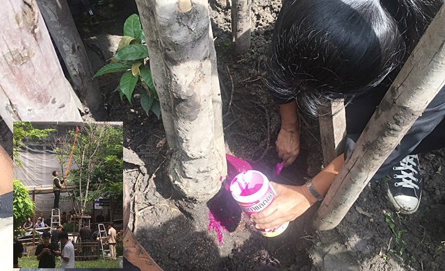 ศิริราช 27 ต.ค.-รุกขกรเร่งฟื้นฟูต้นศรีตรังที่พระบาทสมเด็จพระปรมินทรมหาภูมิพลอดุลยเดช ทรงปลูกเมื่อปี 2554 ย้ำต้นไม้ยังไม่ตาย รากยังสมบูรณ์ คาด 1 เดือนฟื้นฟูเห็นผลให้วิตามิน ฟอสฟอรัส ทายากั้นเชื้อรา ปรับสมดุลเลี้ยงลำต้น