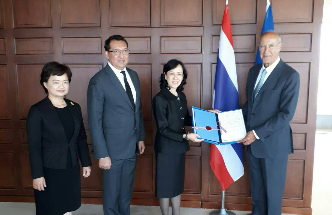 น.ส.วิบูลย์ลักษณ์ ร่วมรักษ์ ปลัดกระทรวงพาณิชย์ พร้อมด้วยนายทศพล ทังสุบุตร อธิบดีกรมทรัพย์สินทางปัญญา และ น.ส.สุนันทา กังวาลกุลกิจ เอกอัครราชทูตคณะผู้แทนถาวรไทยประจำองค์การการค้าโลกและองค์การทรัพย์สินทางปัญญาโลก ได้ยื่นภาคยานุวัติสารพิธีสารมาดริดต่อนายฟรานซิส เกอร์รี่ ผู้อำนวยการใหญ่องค์การทรัพย์สินทางปัญญาโลก (WIPO) ทำให้ประเทศไทยเป็นสมาชิกพิธีสารมาดริดลำดับที่ 99 และจะมีผลวันที่ 7 พฤศจิกายน 2560 เป็นต้นไป