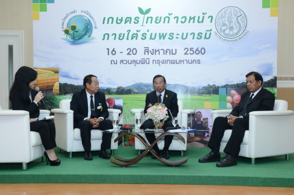 พลเอกฉัตรชัย สาริกัลยะ รัฐมนตรีว่าการกระทรวงเกษตรและสหกรณ์ เปิดเผยว่า กระทรวงเกษตรฯ จะจัดงาน “เกษตรไทยก้าวหน้า ภายใต้ร่มพระบารมี” ระหว่างวันที่ 16 – 20 สิงหาคม 2560 ณ สวนลุมพินี เพื่อแสดงให้เห็นถึงความพร้อมและศักยภาพของประเทศไทยในภาคการเกษตรที่พร้อมก้าวเข้าสู่ ไทยแลนด์ 4.0 โดยแสดงศักยภาพทั้ง Smart Farmer เกษตรกรต้นแบบ Young Smart Farmer เกษตรกรรุ่นใหม่ Smart Group กลุ่มวิสาหกิจชุมชนต่าง ๆ รวมทั้งนวัตกรรมภาคการเกษตรที่สอดคล้องกับสถานการณ์ปัจจุบัน ทั้งนี้ ได้เชิญคณะทูตานุทูต ประจำประเทศไทย เข้าร่วมชมงานกว่า 30 ประเทศ เพื่อแสดงให้เห็นถึงพลังและศักยภาพของการเกษตรไทยในฐานะเป็นแหล่งผลิตอาหารสำคัญของโลก โดยได้รับความร่วมมือครอบคลุมทุกมิติทั้งเศรษฐกิจ และการลงทุน นอกจากนี้ ภายในงานยังจัดโซน Business Matching เพื่อเจรจาธุรกิจระหว่างเกษตรกรกับผู้ประกอบการ เพื่อสร้างเครือข่ายสินค้าการเกษตรให้กว้างขวางด้วย