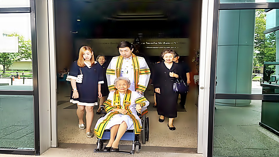 มสธ.9 ส.ค.-คุณยายกิมหลั่น วัย 91ปี บัณฑิตที่มีอายุมากที่สุดของ มสธ.ปีนี้ เดินทางจากจ.พะเยา เข้ารับพระราชทานปริญญาบัตรวันนี้ ท่ามกลางลูกหลานร่วมแสดงความยินดีในความสำเร็จ พร้อมคอยดูแลอย่างใกล้ชิด