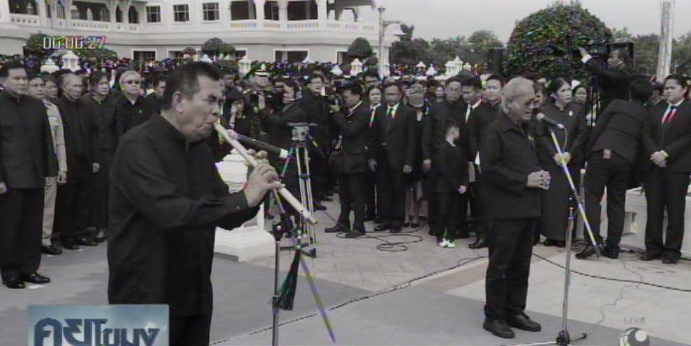 นอกจากนี้ ยังพร้อมใจกันร้องเพลงสรรเสริญพระบารมีและพ่อแห่งแผ่นดินให้ดังกึกก้อง เพื่อแสดงความอาลัย