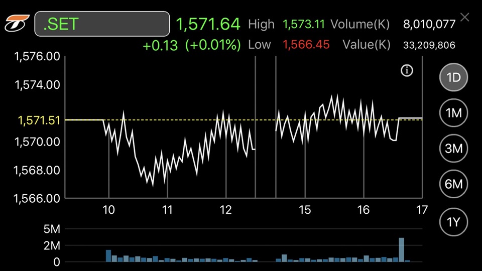 1,571.64 จุด เพิ่มขึ้น 0.13 จุด