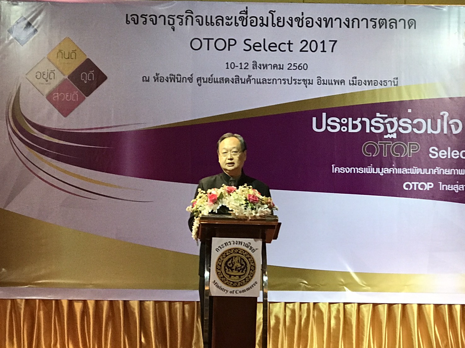 นายสนธิรัตน์ สนธิจิรวงศ์ รัฐมนตรีช่วยว่าการกะทรวงพาณิชย์ กล่าวในการเป็นประธานเปิดงาน เจรจาธุรกิจ และเชื่อมโยงช่องทางการตลาด OTOP Select 2017 ว่า ผู้ประกอบการ และผู้ผลิตผลิตภัณฑ์โอทอป ในปัจจุบันมีจำนวนมาก แต่ยังประสบปัญหาที่ไม่สามารถทำให้ผลิตภัณฑ์ และยอดขายเติบโตได้แบบก้าวกระโดด เพราะไม่เข้าใจกลไกตลาด ไม่มีช่องทางการจำหน่าย รวมทั้งมีกำลังการผลิตไม่เพียงพอต่อความต้องการของผู้บริโภค และเมื่อต้องผลิตในปริมาณมากก็จะมีปัญหาสินค้าไม่ได้มาตรฐาน ไม่มีการรับรองคุณภาพตามเกณฑ์มาตรฐาน ทำให้ลูกค้าขาดความเชื่อมั่น ขณะที่รัฐบาลที่ต้องการสร้างความเข้มแข็งให้กับท้องถิ่น ผ่านนโยบายเศรษฐกิจฐานราก หรือ Local Economy เพื่อสร้างรายได้ที่ยั่งยืนให้กับท้องถิ่น จึงได้ช่วยเจรจาจับคู่ธุรกิจผู้ประกอบการ โอทอป กับห้างค้าปลีกสมัยใหม่ เพื่อสร้างเครือข่าย และช่องทางการจำหน่าย สามารถขยายตลาดทั้งใน และต่างประเทศได้มากขึ้น และจะช่วยพัฒนาผู้ประกอบการโอทอปของไทย มีความเข้มแข็งและมีรายได้ที่ยั่งยืน