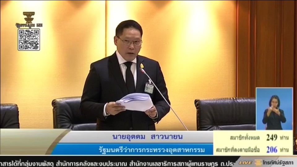 นายอุตตม สาวนายน รัฐมนตรีว่าการกระทรวงอุตสาหกรรม ตอบกระทู้ถามแทนนายกรัฐมนตรีว่า ที่ผ่านมารัฐบาลได้ดำเนินการขับเคลื่อนผู้ประกอบการ SMEs ผ่านกลไกประชารัฐ เพื่อให้เกิดการพัฒนาไปในทิศทางเดียวกันครอบคุลมทุกระดับ และปรับเปลี่ยนพฤติกรรมการผลิตโดยนำเทคโนโลยีและนวัตกรรมมาใช้ ส่งเสริมให้มีการเชื่อมโยงภาคอุตสาหกรรมขนาดใหญ่ รวมทั้งสนับสนุนมาตรการทางการเงินต่าง ๆ เพื่อส่งเสริมผู้ประกอบการเพิ่มขีดความสามารถในการแข่งขันที่เหมาะสม โดยมีการจัดตั้งกองทุนต่าง ๆ เพื่อส่งเสริมวิสาหกิจขนาดย่อมและรายย่อย เพื่อให้ผู้ประกอบการ SME ได้รับเงินทุนไปดำเนินกิจการที่ครอบคลุมผู้ประกอบการทุกระดับ ทั้งนี้มาตรการต่าง ๆ ที่รัฐบาลดำเนินการจะส่งผลให้เกิดการจ้างงาน ขณะเดียวกันยังมีมาตรการสนับสนุนที่ไม่ใช่มาตรการด้านการเงินอีกด้วย เช่น การส่งเสริมองค์ความรู้ การเสริมทักษะด้านธุรกิจ มีระบบพี่เลี้ยงเพื่อเพิ่มขีดความสามารถ และต่อยอดองค์ความรู้ต่าง ๆ เพื่อรองรับการเปลี่ยนแปลงอุตสาหกรรมในอนาคต