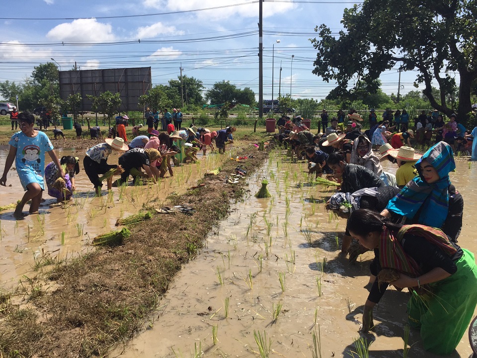 มหาสารคาม 11 ส.ค.- รุ่นพี่นิสิต ม.มหาสารคาม นำรุ่นน้องแต่งแฟนซีร่วมลงแขกดำนาเฉลิมพระเกียรติฯ “ปลูกวันแม่ เกี่ยววันพ่อ” หนึ่งในกิจกรรมรับน้องแบบสร้างสรรค์ และสืบสานประเพณีวัฒนธรรมที่ดีงามของการทำนาที่นับวันจะเลือนหาย อาจกลายเป็นตำนาน