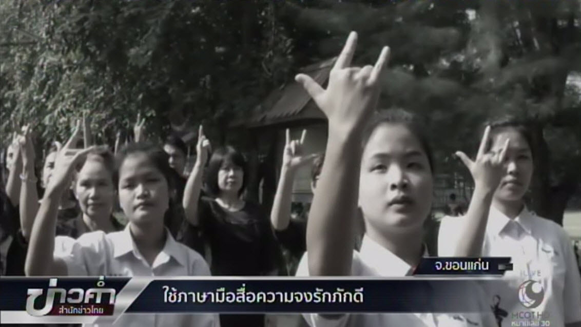 นี่เป็นภาพตัวแทนนักเรียนโรงเรียนโสตศึกษาขอนแก่น ที่มีความบกพร่องด้านการได้ยิน ใช้ภาษามือเป็นสื่อกลางแสดงออกถึงความจงรักภักดี และสำนึกในพระมหากรุณาธิคุณอย่างหาที่สุดมิได้.-สำนักข่าวไทย
