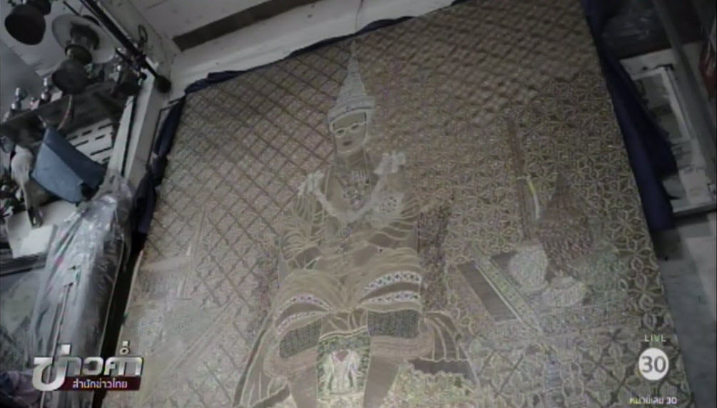 พระบรมฉายาสาทิสลักษณ์พระบาทสมเด็จพระปรมินทรมหาภูมิพลอดุลยเดช สร้างจากการแทงใบลานให้เป็นลวดลายชิ้นเล็กๆ นับหมื่นๆ ชิ้น นำมาวางเรียงแล้วลงสีตามช่องเล็กๆ คือ ศิลปะการแทงใบลานที่ อาจารย์กุศล เรณุนันท์ ณ อยุธยา บรรจงสร้างนานถึง 19 ปี ในบ้านพัก อ.เมือง จ.อำนาจเจริญ มุ่งมั่นตั้งใจทูลเกล้าฯ ถวายพระบาทสมเด็จพระปรมินทรมหาภูมิพลอดุลยเดช