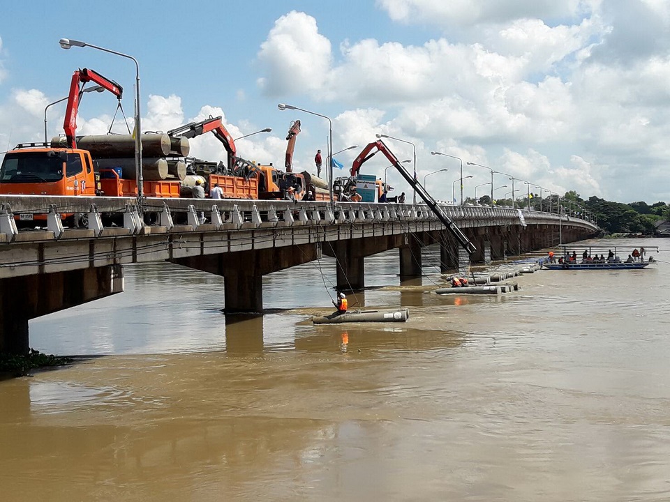 สำหรับเครื่องดันน้ำที่เจ้าหน้าที่กรมชลประทานนำมาติดตั้งที่สะพานข้ามแม่น้ำมูลในจุดนี้ ปัจจุบันมีรวมกันถึง 38 ชุด จะช่วยดันน้ำให้ไหลออกจากแม่น้ำมูลลงสู่แม่น้ำโขงตามธรรมชาติวันละ 250 ล้านลูกบาศก์เมตร เป็นวันละกว่า 300 ล้านลูกบาศก์เมตร โดยมีอัตราการระบายน้ำเพิ่มจากปกติอีกวันละเกือบ 50 ล้านลูกบาศก์เมตรต่อวัน