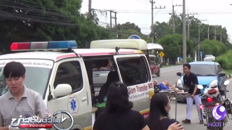 เชียงใหม่ 15 ส.ค. – พลเมืองดีช่วยกันประคองตัวเด็กนักเรียนชายวัย 13 ปี ที่ได้รับบาดเจ็บสาหัสขยับตัวไม่ได้ หลังประสบอุบัติเหตุขี่รถจักรยานยนต์มาตามถนนโชตนา มุ่งหน้าเข้าตัวเมืองเชียงใหม่ เพื่อไปโรงเรียนในช่วงเช้า ช่วงผ่านทางแยก เป็นจังหวะเจ้าหน้าที่ตำรวจให้สัญญาณหยุดรถ ซึ่งรถทุกคันได้จอดตามจังหวะสัญญาณ ยกเว้นรถของเด็กชายคนดังกล่าวได้พุ่งชนรถยนต์ที่กำลังเลี้ยวเข้าหมู่บ้านอย่างเต็มแรง จนรถจักรยานยนต์เสียหาย และเด็กนักเรียนได้รับบาดเจ็บสาหัส. – สำนักข่าวไทย