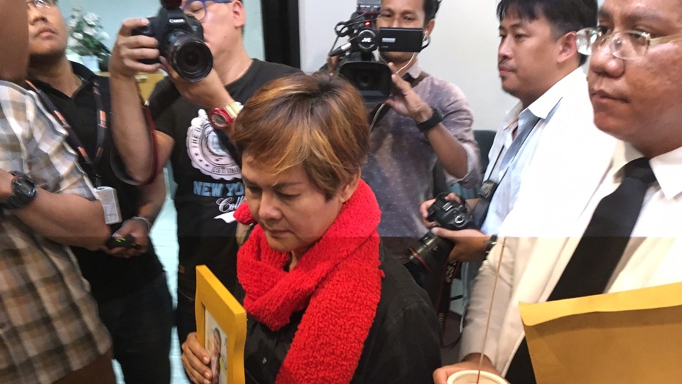 กทม.16 ส.ค. แม่น้องพลอย สังเกตการณ์การส่งตัวนายพลกฤต วิเศษ อดีตแฟนหนุ่มน้องพลอยให้ตำรวจดำเนินคดี หลังฆ่าแล้วเผานั่งยางอำพรางศพ ที่สระบุรี เมื่อ 3 ปีก่อน
