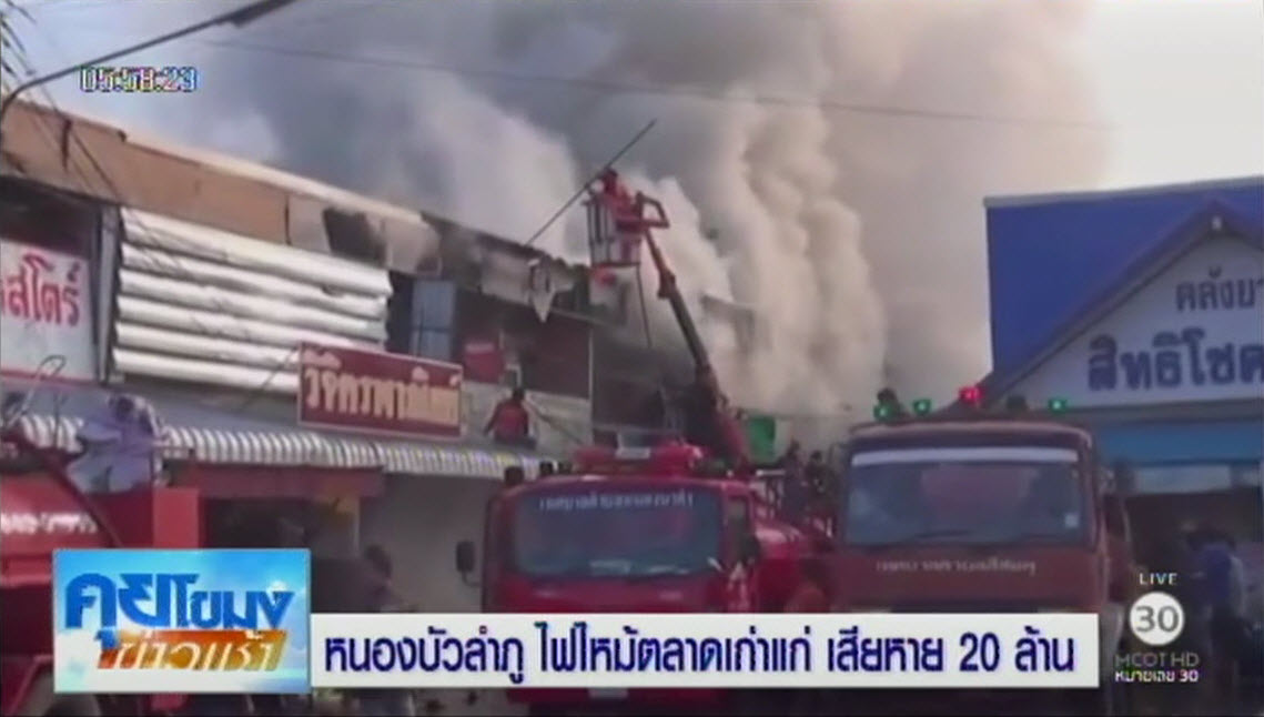 หนองบัวลำภู 12 ธ.ค.-เพลิงไหม้ตลาดเก่าแก่อายุเกือบ 100 ปี ที่ จ.หนองบัวลำภู เสียหายกว่า 20 ล้านบาท