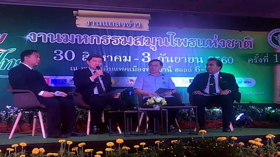 นพ.ปิยะสกล สกลสัตยาทร รัฐมนตรีว่าการกระทรวงสาธารณสุข พร้อมด้วย นพ.จรัญ บุญฤทธิการ ผู้อำนวยการโรงพยาบาลเจ้าพระยาอภัยภูเบศร และ นพ.นพพร ชื่นกลิ่น ผู้อำนวยการองค์การเภสัชกรรม กล่าวถึง การจัดงานมหกรรมสมุนไพรไทย แห่งชาติ ครั้งที่ 14 ระหว่างวันที่ 30 สิงหาคม – 3 กันยายน 2560 ที่ฮอลล์ 6-8 อิมแพคเมืองทองธานี ว่า การจัดงานมหกรรมสมุนไพรไทยครั้งนี้ เพื่อเชิดชูสมุนไพรไทย และนวัตกรรมไทย ที่แปลกใหม่และมุ่งหวังให้ประชาชนเกิดการเรียนรู้ใช้ผลิตภัณฑ์สมุนไพรไทย กระตุ้นการใช้ยาไทย ส่งเสริมผลิตภัณฑ์สมุนไพร และยาไทย ให้แเพร่หลายมากขึ้น ซึ่งสามารถนำไปต่อยอดได้ อย่างไรก็ตามตั้งเป้าให้มีคนมาเที่ยวชมงาน 5 แสนคนขึ้นไป
