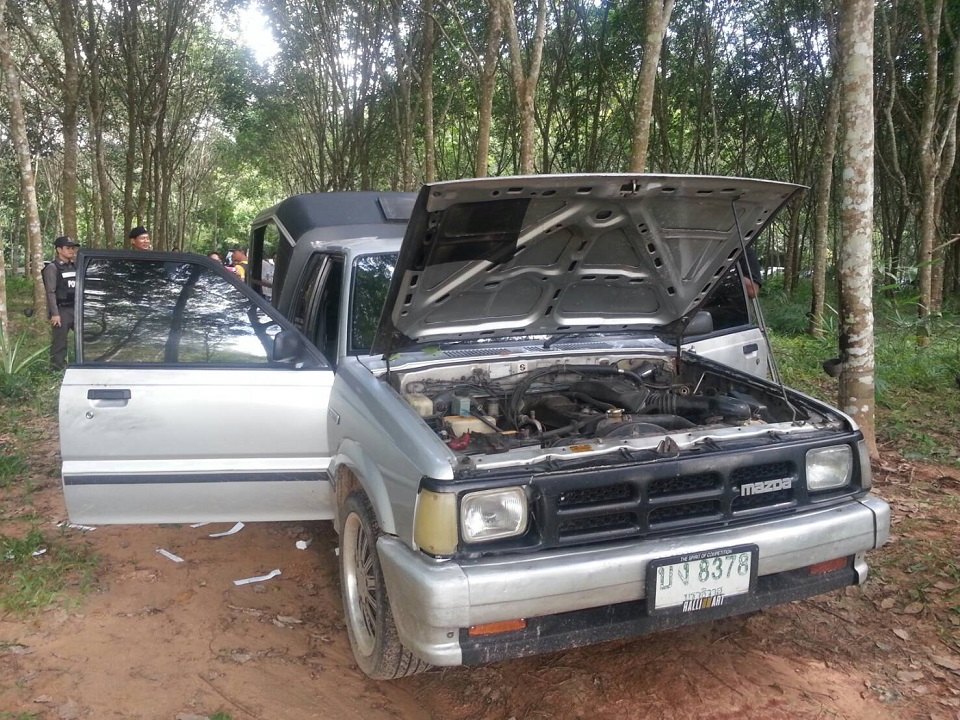 เบื้องต้นทราบว่ารถกระบะ มาสด้า คันนี้ถูกนำมาจอดทิ้งไว้ตั้งแต่เมื่อวาน และเป็นบริเวณที่มักจะมีคนนำรถมาจอดตกปลาเป็นประจำ จึงไม่เป็นที่ผิดสังเกต แต่เมื่อจอดทิ้งไว้ข้ามคืน ชาวบ้านจึงรีบแจ้งเจ้าหน้าที่ให้ทราบ คาดว่าผู้ก่อเหตุคงใช้เส้นทางนี้เพื่อเลี่ยงด่านตรวจหลบหนี แต่สภาพเป็นป่าเขา และด้านหน้าเป็นคลอง ไม่สามารถเดินทางต่อไปได้ จึงต้องทิ้งรถไว้