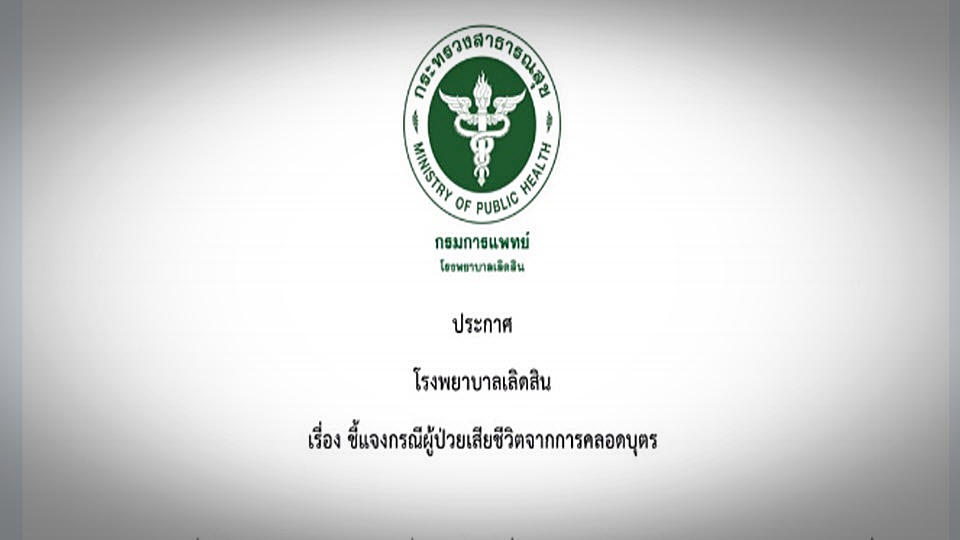 โรงพยาบาลเลิดสิน ออกประกาศชี้แจงกรณีผู้ป่วยเสียชีวิตจากการคลอดบุตร ว่า “ตามที่ได้มีบุคคลทำการเผยแพร่สื่อออนไลน์เกี่ยวกับกรณีผู้ป่วยเสียชีวิตจากการคลอดบุตรที่โรงพยาบาลเลิดสินนั้น ทางโรงพยาบาล ได้ทำการตรวจสอบข้อมูลแล้ว ขออธิบายรายละเอียด ดังนี้