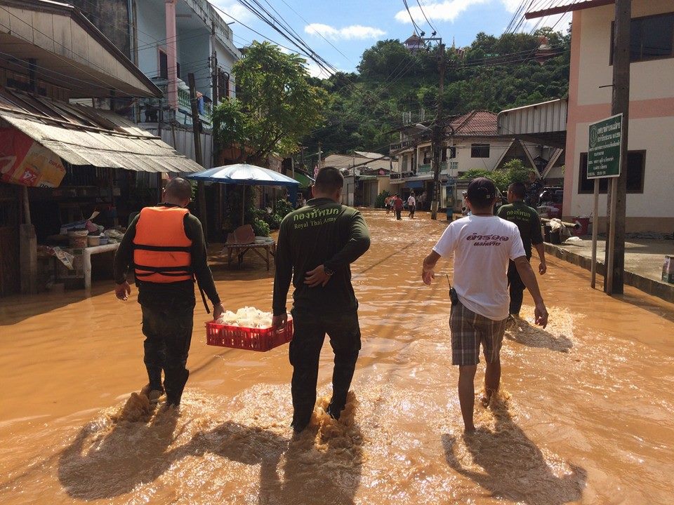 สถานการณ์น้ำท่วมชุมชนสายลมจอย ชุมชนไม้ลุงขน และชุมชนบ้านเกาะทราย เขตเทศบาลตำบลแม่สาย อ.แม่สาย จ.เชียงราย จากแม่น้ำสายเอ่อล้นตลิ่ง เพราะฝนตกหนักมาหลายวัน ทำให้บางพื้นที่มีน้ำท่วมสูง 1 เมตร ล่าสุดระดับน้ำเริ่มลดลงและฝนหยุดตก พร้อมกับการระบายน้ำลงแม่น้ำรวกและแม่น้ำโขง หากค่ำนี้ไม่มีฝนตกลงมาอีก เชื่อว่าน้ำท่วมชุมชนดังกล่าวจะลดลงได้มากกว่าเดิม และจะคืนสู่ปกติได้อย่างรวดเร็ว ขณะที่ชาวบ้านทยอยทำความสะอาดบ้านเรือนและร้านค้าแล้ว ส่วนฝั่งตลาดท่าล้อ จ.ท่าขี้เหล็ก ประเทศเมียนมา น้ำยังท่วมสูง เพราะพนังกั้นน้ำต่ำ และพื้นที่ส่วนใหญ่เป็นที่ราบลุ่ม