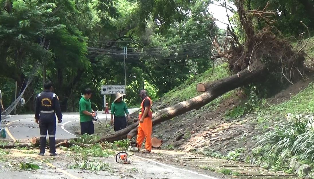 ฝนที่ตกหนักในตัวเมืองเชียงใหม่ ทำให้ต้นไม้ใหญ่ความสูงเกือบ 10 เมตร บริเวณทางขึ้นสถานีวิจัยและเกษตรพื้นที่สูง ต.สุเทพ อ.เมืองเชียงใหม่ โค่นลงมาทั้งต้นแบบถอนรากถอนโคน ล้มขวางถนน และยังทับสายไฟฟ้าจนทำให้เสาไฟฟ้าหักไปอีก 2 ต้น เจ้าหน้าที่ต้องปิดเส้นทางชั่วคราว เพื่อเร่งตัดต้นไม้ที่กีดขวางเส้นทางจราจรขึ้นไปยังร้านอาหารและสถานีวิจัยเกษตรบนพื้นที่สูง และม้วนเก็บสายไฟและสายโทรศัพท์ไปไว้ข้างทาง