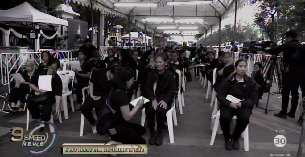 บรรยากาศที่สนามหลวง มีประชาชนมารอเข้าถวายสักการะและลงนามในสมุดหลวง แสดงความอาลัยพระบาทสมเด็จพระปรมินทรมหาภูมิพลอดุลยเดช ตั้งแต่เช้ามืด ส่วนประชาชนจากต่างจังหวัดก็มารอตั้งแต่เมื่อคืนนี้ โดยผู้ที่จะเข้าไปบริเวณเต็นท์ภายในสนามหลวงต้องผ่านเครื่องสแกนโลหะทุกคน เพื่อความปลอดภัย และรับบัตรคิวที่เจ้าหน้าที่จัดเตรียมไว้ จำนวน 45,000 ใบ แต่ในช่วงเช้ามืดจนถึง 06.30 น. ยังไม่ต้องรับบัตรคิว เพื่อความรวดเร็วให้ประชาชนเข้าไปนั่งรอจนเต็มพื้นที่ก่อน บริเวณเต็นท์พักทั้ง 9 เต็นท์ ด้านหน้าประตูวิเศษไชยศรี ถึงวัดมหาธาตุฯ ก่อนเปิดรับบัตรคิวในเวลา 07.00 น. ซึ่งเมื่อวานบัตรคิวแจกไปประมาณ 10,000 ใบ