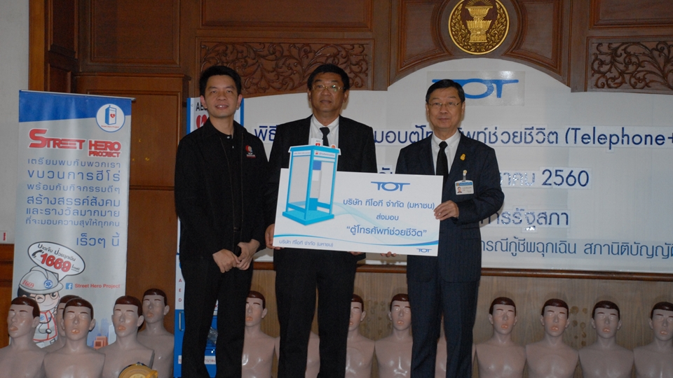 นายสุรชัย เลี้ยงบุญเลิศชัย รองประธานสภานิติบัญญัติแห่งชาติ (สนช.) เป็นประธานในพิธีรับมอบตู้โทรศัพท์ช่วยชีวิต ซึ่งบริษัท ทีโอที จำกัด (มหาชน) ร่วมกับสถาบันการแพทย์ฉุกเฉินแห่งชาติ (สพฉ.) ริเริ่มโครงการ โดยมีวัตถุประสงค์เพื่อเพิ่มโอกาสการรอดชีวิตของผู้ป่วยหัวใจหยุดเต้นเฉียบพลัน ด้วยการติดตั้งเครื่อง Automated External Defibrillator (AED) ในตู้โทรศัพท์สาธารณะเพื่อลดความเสี่ยงในการเกิดภาวะฉุกเฉินนอกสถานพยาบาล
