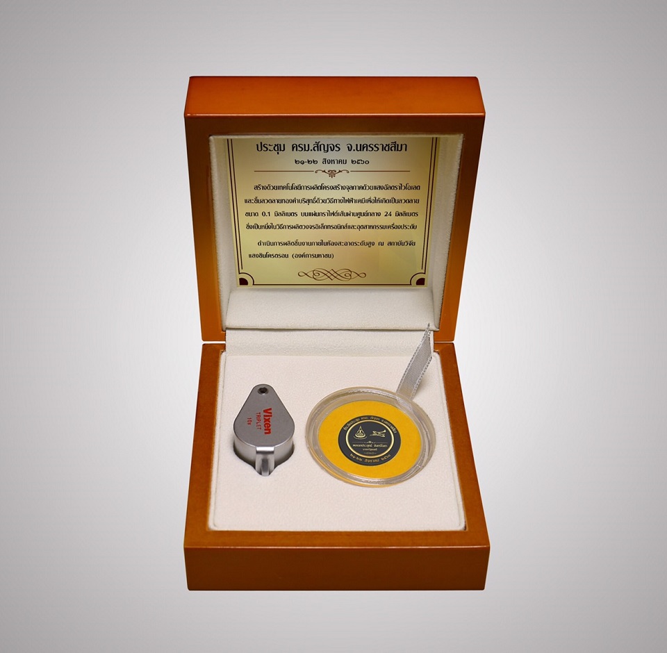 นครราชสีมา 21 ส.ค.- ซินโครตรอน-มทส.ทำเหรียญขนาดจิ๋วโครงสร้างจุลภาคด้วยแสงอัลตราไวโอเลต ลวดลายทองคำบริสุทธิ์ มอบเป็นที่ระลึกประชุม ครม.สัญจร