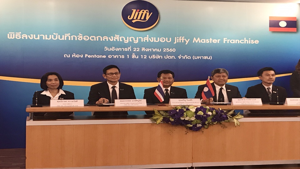 วันนี้ (22 ส.ค.) ปตท.ลงนามสัญญาการมอบสิทธิ์การจำหน่ายเฟรนไชส์ร้านสะดวกซื้อ Jiffy (Master Franchisee) ใน สปป.ลาวทั้งหมดระหว่างบริษัท ปตท. บริหารธุรกิจค้าปลีก จำกัด (PTTRM) และบริษัท ปตท. (ลาว) จำกัด โดยปี 2560 ร้าน Jiffy สปป.ลาวมี 19 สาขา และมีแผนที่จะเพิ่มจำนวนร้านเฟรนไชส์ เป็น 97 สาขาภายในปี 2565 เพื่อตอบสนองความต้องการของผู้บริโภคที่เพิ่มขึ้น