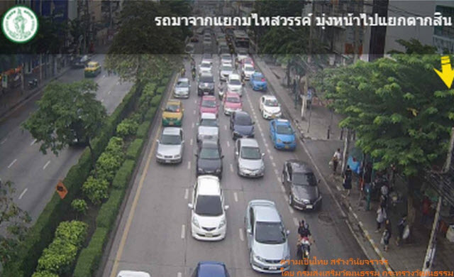 ถนนสมเด็จพระเจ้าตากสิน ขาเข้า มุ่งหน้าวงเวียนใหญ่ รถมาก เคลื่อนตัวช้า ท้ายสะสมแยกตากสิน