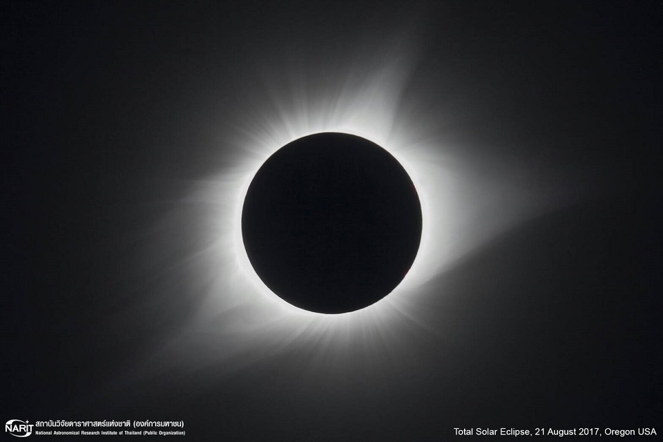 ดร.ศรัณย์ โปษยะจินดา ผู้อำนวยการสถาบันวิจัยดาราศาสตร์แห่งชาติ (องค์การมหาชน) หรือ สดร. เปิดเผยว่า ได้นำทีมเจ้าหน้าที่ สดร.เดินทางไปเก็บข้อมูลและศึกษาปรากฏการณ์สุริยุปราคาเต็มดวงที่สหรัฐอเมริกา ตอนเช้าวันจันทร์ที่ 21 สิงหาคม 2560 ตามเวลาในสหรัฐ และช่วงคราสเต็มดวงเข้าสู่วันที่ 22 สิงหาคม 2560 ตามเวลาประเทศไทย ซึ่ง สดร.ได้ตั้งจุดสังเกตอยู่บริเวณวัดพุทธโอเรกอน เมืองซาเลม รัฐโอเรกอน ทางทิศตะวันตกของสหรัฐ อยู่ห่างจากจุดกึ่งกลางของแนวคราสเต็มดวงประมาณ 2 กิโลเมตร พร้อมตั้งกล้องโทรทรรศน์ อุปกรณ์วัดความสว่างท้องฟ้า รวมทั้งอุปกรณ์สังเกตการณ์ทั้งทางตรงและทางอ้อมชนิดต่าง ๆ เพื่อศึกษาบริเวณแนวคราสเต็มดวง รวมทั้งสภาพอากาศ ซึ่งการเฝ้าสังเกตการณ์มีทั้งชาวไทยในโอเรกอนและนักท่องเที่ยวต่างชาติมาจับจองพื้นที่เพื่อเฝ้าชม ทั้งนี้ ขณะเกิดสุริยุปราคา ทัศนวิสัยท้องฟ้าดีมาก ฟ้าใส ไร้เมฆ สามารถชมปรากฎการณ์ได้ตลอดตั้งแต่ต้นจนสิ้นสุดอย่างสมบูรณ์ ก่อนคราสเต็มดวง สามารถสังเกตการณ์ปรากฏการณ์ข้างเคียงได้อย่างชัดเจน เช่น ปรากฎการณ์เงาเสี้ยว (Crescent Shadows) ปรากฏการณ์แถบเงา (Shadow Bands) ปรากฏการณ์แหวนเพชร (The Diamond Ring Effect) ปรากฏการณ์ลูกปัดเบลีย์ (Baily’s Beads) สำหรับประเทศไทยไม่สามารถสังเกตเห็นสุริยุปราคาเต็มดวงครั้งนี้ได้
