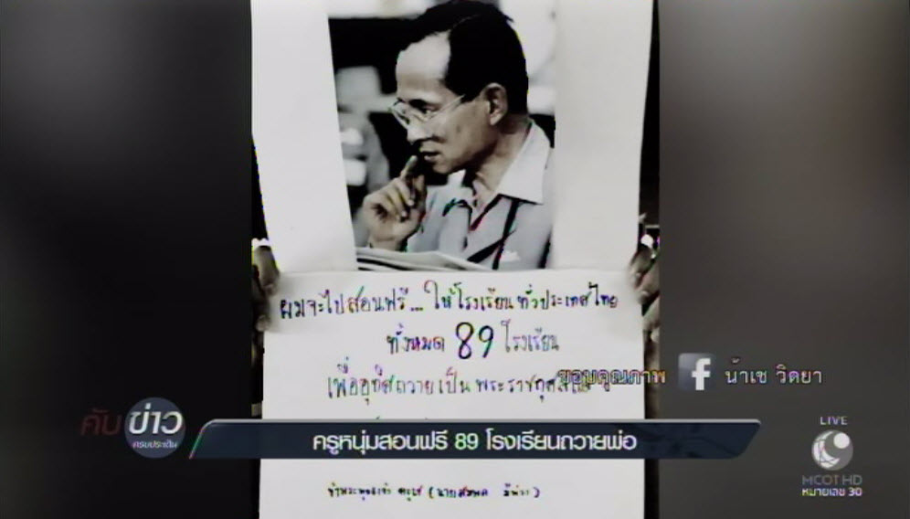 กทม. 25 ต.ค.- ชื่นชมครูหนุ่ม ตั้งใจสอนฟรี 89โรงเรียนทั่วประเทศ ถวายเป็นพระราชกุศลแด่ “ในหลวง ร.9” กำหนดให้แล้วเสร็จ 5 ธ.ค.60 เจ้าตัวลั่นไม่มีข้อเเม้ใดที่ไม่ไปสอน