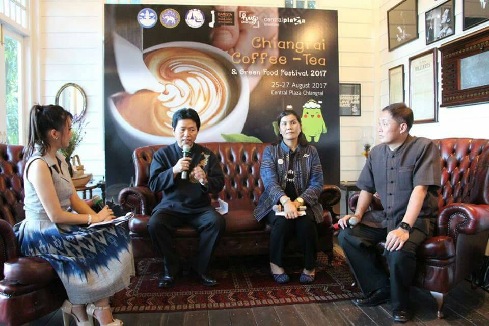 นายบุญเวทย์ ศรีพวงใจ รองผู้ว่าราชการจังหวัดเชียงราย นางสาวปราณปริยา พลเยี่ยม ผู้อำนวยการท่องเที่ยวและกีฬาจังหวัดเชียงราย และนายเลิศชาย หวังตระกูลดี ผู้อำนวยการการท่องเที่ยวแห่งประเทศไทย สำนักงานเชียงราย แถลงที่ร้านชีวิตธรรมดา เขตเทศบาลนครเชียงราย เพื่อเตรียมความพร้อมจัดงาน “Chaingrai Coffee–Tea & green Food Festival 2017” วันที่ 25-27 สิงหาคมนี้ ที่ศูนย์การค้าเซ็นทรัลพลาซ่าเชียงราย เป็นการพัฒนาศักยภาพและส่งเสริมการท่องเที่ยว โดยใช้ชา กาแฟ และอาหารปลอดภัยของจังหวัดเชียงรายให้เป็นที่ประจักษ์มากขึ้นทั้งในและต่างประเทศ ตามนโนบายของรัฐบาลในการกระจายรายได้มาจากภาคการเกษตรและการท่องเที่ยวให้ยั่งยืน