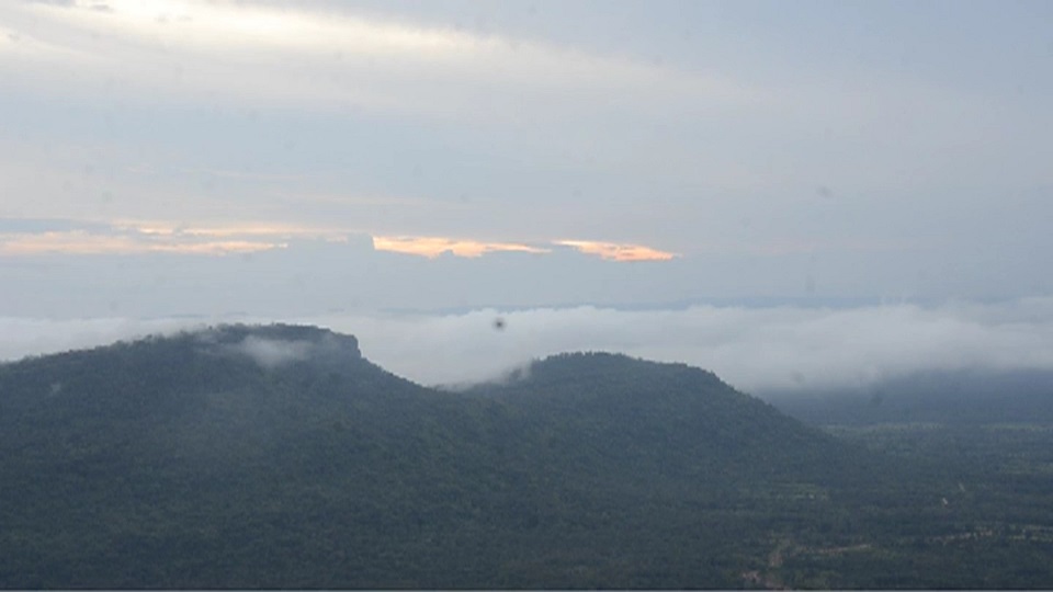 ศรีสะเกษ 24 ส.ค.- ชายแดนไทย-กัมพูชา ด้านศรีสะเกษอากาศเย็นสบายฝนโปรยปรายมาหลายวัน นักท่องเที่ยวขึ้นผามออีแดงชมความงามทะเลหมอกล้อแสงตะวัน อุตุฯ ระบุช่วงนี้ยังมีฝนเพิ่ม