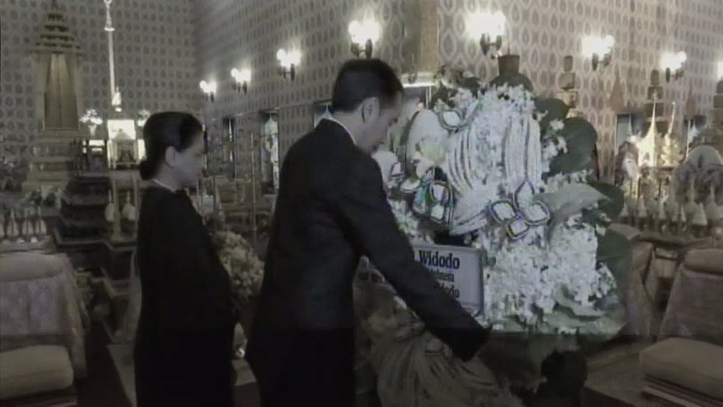 เช่นเดียวกับนายโจโก วิโดโด ประธานาธิบดีสาธารณรัฐอินโดนีเซีย และภริยา เข้าวางพวงมาลาถวายสักการะพระบรมศพ และได้ไปที่ห้องแดง ศาลาว่าการพระราชวัง เพื่อไปถวายสักการะเบื้องหน้าพระบรมฉายาลักษณ์ และลงนามแสดงความอาลัย และสำนึกในพระมหากรุณาธิคุณอย่างหาที่สุดมิได้